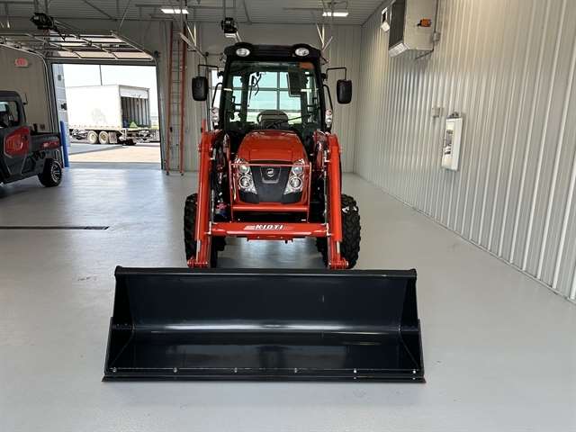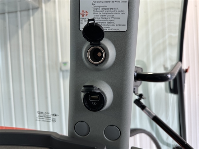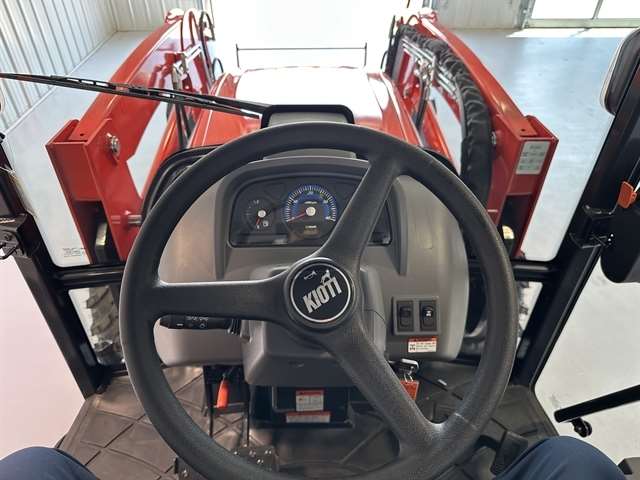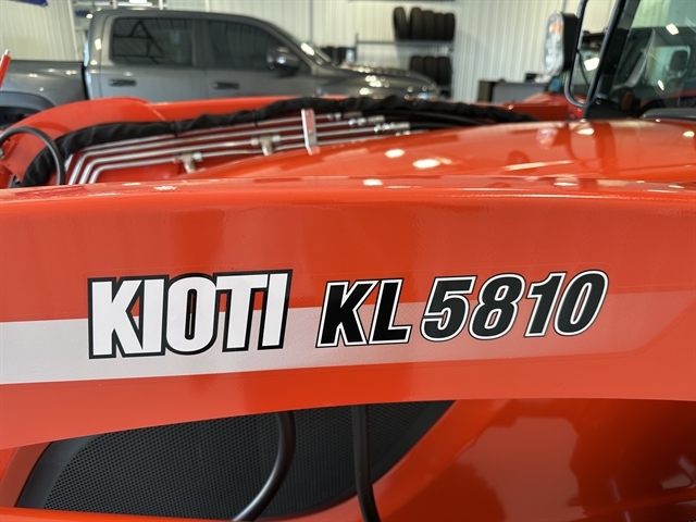 OPTIONS - KL5810 LOADER DK6/ w 72" QA BUCKETT & GRILL, R14 TIRES, 3RD FUNCTION, BLUETOOTH PLAYER, BLOCK HEATER, 72" CUTTING EDGE, AC/HEAT. For those seeking a compact utility tractor that delivers big power, at an affordable price, look no further than the KIOTI NS Series. These tractors balance size and robust capabilities to get demanding tasks done. Eco-Friendly Diesel Engine - The whisper-quiet, eco-friendly KIOTI Tier 4 CRDI engine improves fuel efficiency while reducing noise levels. Silence and strength go hand-in-hand, letting you conquer every task with quiet confidence. Hydraulic Independent PTO - Effortlessly control your implements with the hydraulic independent PTO. A single knob engages the standard rear PTO, while a safety interlock protects you by preventing engine startup with the switch on. Choose manual or automatic operation: select Auto PTO and watch the PTO disengage automatically when the 3-point control rises, keeping you safe and your workflow smooth. Single Lever Joystick - The single lever joystick redefines front-loader operation. With a flick of your wrist, you command every movement, from raising the boom to lowering the bucket. A float position allows the bucket free flotation over the ground surface. Fully-Featured HST Models - This powerhouse system smoothly delivers power where you need it, while the intuitive three-range transmission (Hi/Mid/Low) and twin pedal operation keep things comfortable and safe. Engage cruise control and savor the smooth ride as you tackle your toughest jobs with newfound ease. Rear Remote Hydraulic Valve Standard - Adds versatility and control by allowing you to operate hydraulic implements like backhoes, mowers, and hay rakes using a lever from the cab.