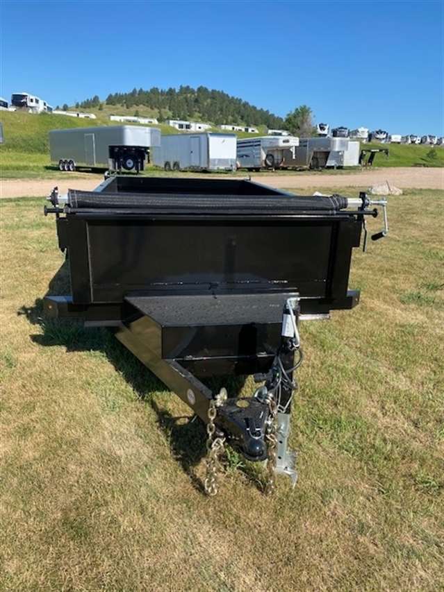 2025 Midsota model DT60 Dump Box 60 inches wide and 10ft long, 16 inch tall sides, Steel A-Frame tool box, Power up and power down hoist, tandem 3500lb spring axles for a GVWR of 7000lbs. Roller tarp, Under bed pull out ramps, 3-way tailgate with spreader option.