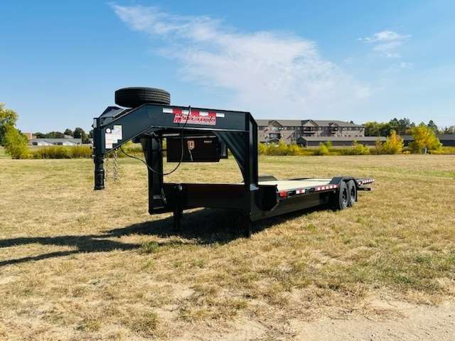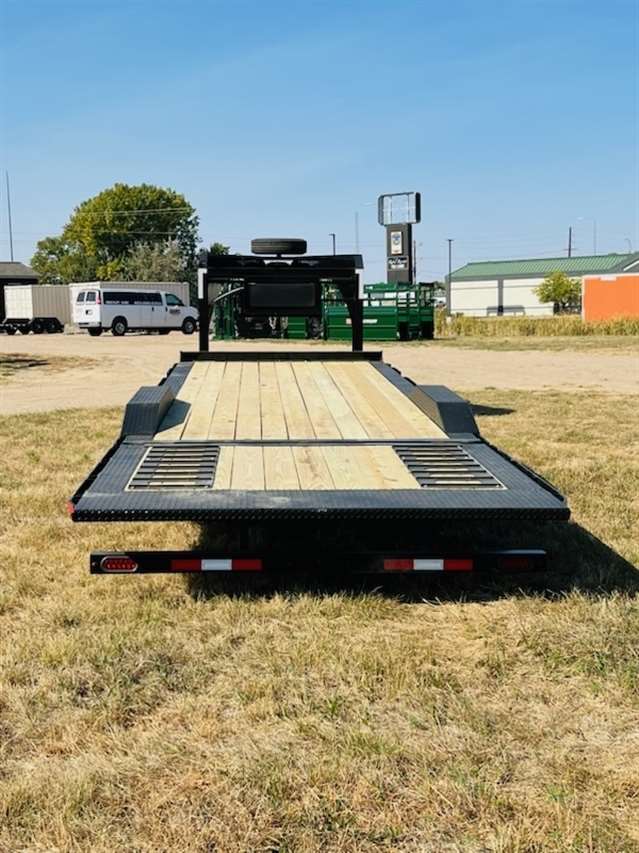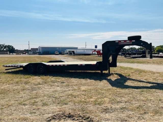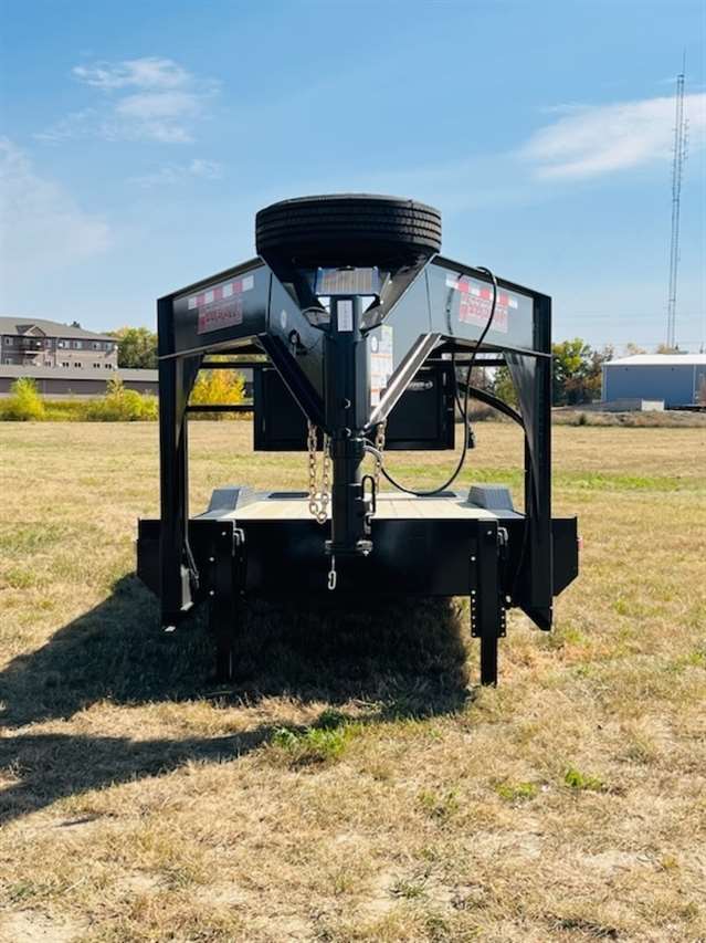 2025 Midsota STWBH-26, Gooseneck Wide Body 102" Wide and 26ft Long has 7ft Hydraulic tail with traction strips, 6" Drive over fenders, Tandem 8,000lb Spring Axles with 215/75R17.5 Steel Wheels with 18ply tires spare and mount, Hydraulic Jacks and wireless remote, Pallet Fork holders, Winch Ready. Solar Charger, GVWR of 18,400lbs, Color Gray