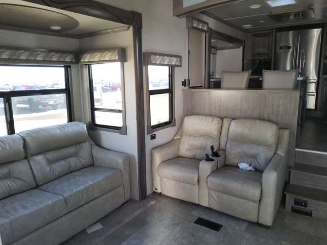 2020 CEDAR CREEK 38EFK FIFTH WHEEL CAMPER, THIS UNIT WENT OVER A BUCKLE ON THE INTERSTATE AND FLEXED THE FRONT PART OF THE FRAME, SALVAGE TITLE, VIN#4X4FCRP29LS223668. VERY NICE CAMPER