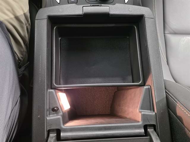 - Console, front center with 2 cup holders, covered storage bin with storage and removable tray