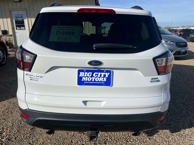 Get ready to escape the ordinary in this white 2018 Ford Escape! This sleek SUV is powered by a 1.5L EcoBoost engine with auto start-stop technology, ensuring a smooth and efficient driving experience every time. With automatic full-time four-wheel drive, you can conquer any road with confidence. The stylish exterior features fog lamps, power liftgate, and LED brakelights for added visibility. Inside, you`ll find a comfortable cabin with leather seats, dual-zone automatic air conditioning, and a power sunroof for a luxurious touch. The 60/40 split-bench rear seats offer versatile seating options for both passengers and cargo. Stay connected on the go with the integrated touchscreen display and SYNC communication system. Safety is a top priority with rear parking sensors, airbags throughout, and a back-up camera. Plus, peace of mind comes with a Carfax report available for this vehicle. Don`t miss out on this feature-packed Ford Escape - the perfect blend of style, performance, and functionality in one stunning package! Visit Big City Motors of Fort Pierre to shop our great deals. You can call 605-494-0324 to schedule your test drive today.