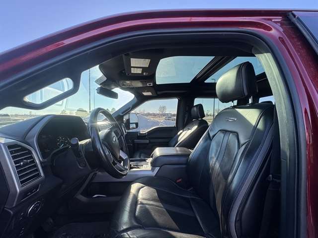 **LOCAL TRADE IN**, **LEATHER**, **MOONROOF**, BLUETOOTH, **REMOTE START**, **Back-Up Camera**, **ADAPTIVE CRUISE CONTROL**, **HEATED SEATS & STEERING WHEEL**, **APPLE CARPLAY/ ANDROID AUTO**, F-150 Platinum, 3.5L V6 EcoBoost, 10-Speed Automatic, 4WD, Ruby Red Metallic Tinted Clearcoat, Black w/Leather-Trimmed Bucket Seats, 20`` Polished Aluminum Wheels, 4-Wheel Disc Brakes, ABS brakes, Active Park Assist, Adaptive Cruise Control, Adjustable pedals, Air Conditioning, AM/FM radio: SiriusXM, AppLink/Apple CarPlay and Android Auto, Auto High-beam Headlights, Class IV Trailer Hitch Receiver, Compass, Equipment Group 701A Luxury, Extended Range 36 Gallon Fuel Tank, Exterior Parking Camera Rear, Front fog lights, Fully automatic headlights, Garage door transmitter, Heated door mirrors, Heated front seats, Heated rear seats, Heated steering wheel, Integrated Trailer Brake Controller, Max Trailer Tow Package, Memory seat, Navigation System, Outside temperature display, Pedal memory, Power door mirrors, Power driver seat, Power passenger seat, Pro Trailer Backup Assist, Radio: B&O Play Premium Audio System, Rain sensing wipers, Rear window defroster, Remote keyless entry, Split folding rear seat, Spray-In Bedliner (Pre-Installed), Steering wheel memory, Steering wheel mounted audio controls, SYNC 3, Tailgate Step w/Tailgate Lift Assist, Technology Package, Traction control, Twin Panel Moonroof, Upgraded Front Stabilizer Bar, Ventilated front seats, Voice-Activated Touchscreen Navigation System.