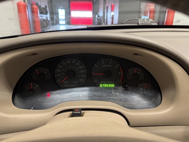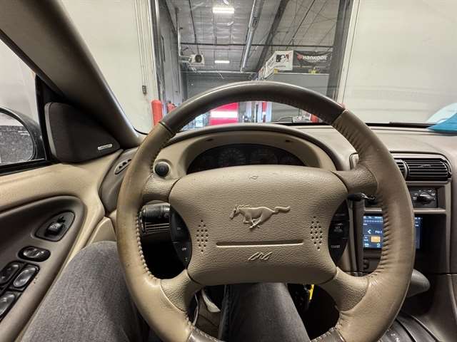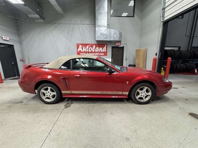 **LOCAL TRADE IN**, **LEATHER**, Mustang V6 Deluxe, 2D Convertible, 3.8L V6 EFI, 4-Speed Automatic with Overdrive, RWD, Red, Medium Parchment w/Leather Seating Surfaces Buckets, 16`` Bright Alloy Wheels, 4-Wheel Disc Brakes, Air Conditioning, Leather Seating Surfaces Buckets, Panic alarm, Power convertible roof, Power door mirrors, Power driver seat, Power windows, Rear window defroster, Remote keyless entry, Speed control.