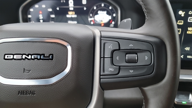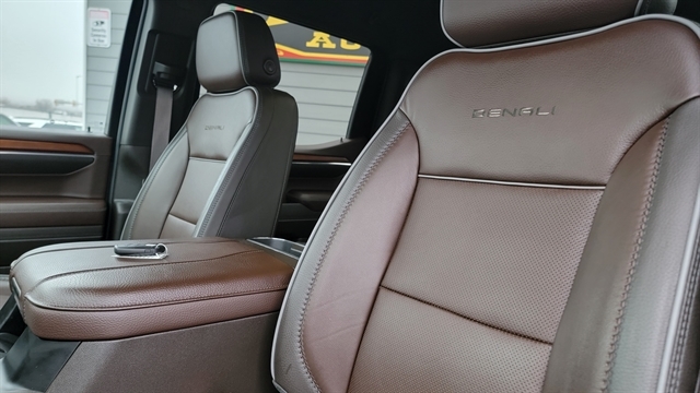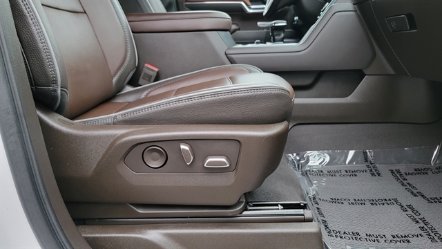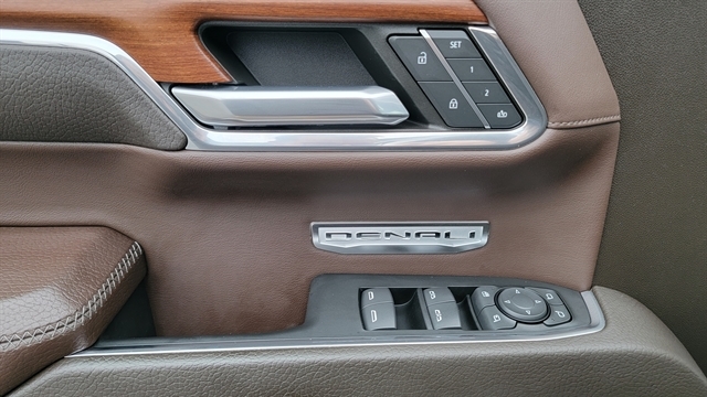 THE DENALI INTERIOR DELIVERS PREMIUM COMFORT WITH POWER LOCKS, POWER WINDOWS, POWER-FOLDING SIDE MIRRORS, AND HIGH-END LEATHER SEATING. BOTH FRONT SEATS FEATURE HEATED AND COOLED FUNCTIONS WITH POWER ADJUSTMENTS AND MEMORY SETTINGS. THE REAR OUTBOARD SEATS ARE ALSO HEATED.
