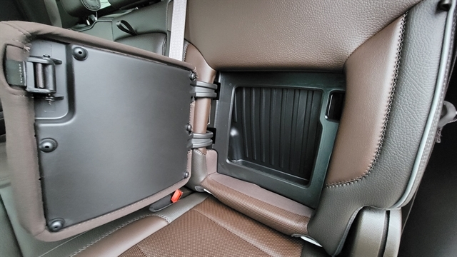 - Seat, Up-level Rear with Storage Package, 60/40 folding bench for Crew Cab models, includes full-length bench seat, seatback storage on left and right side, center fold out armrest with 2 cupholders, full cab width under-seat storage, (includes child seat top tether anchor)
