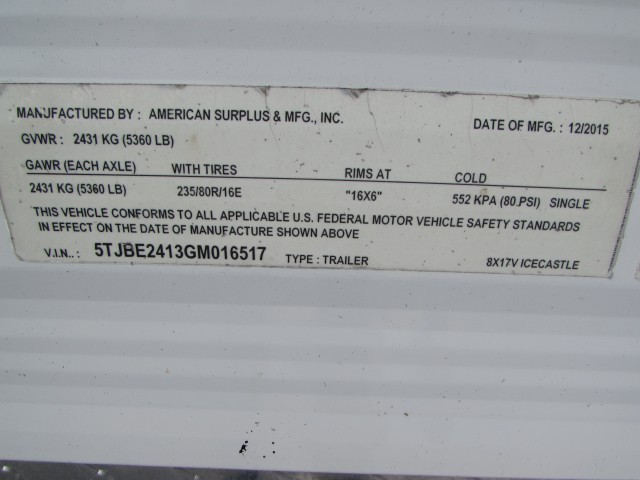 2016 ICE CASTLE 8X17V RV EDITION , COMES WITH NICE EXTRA EQUIPMENT!!!