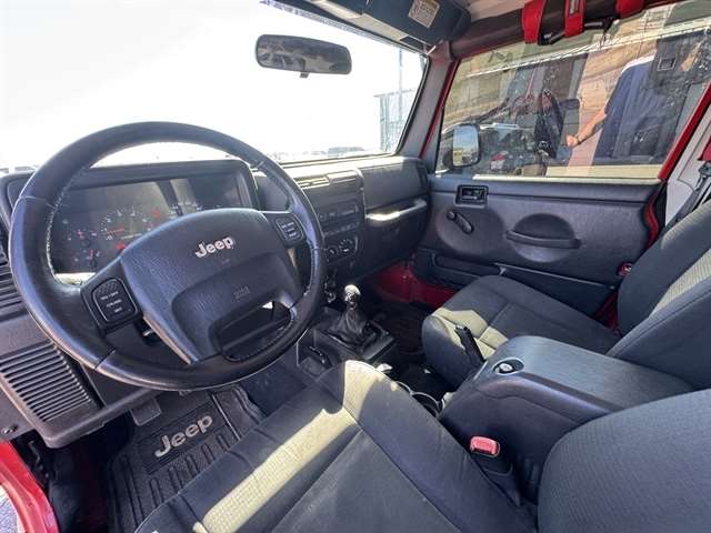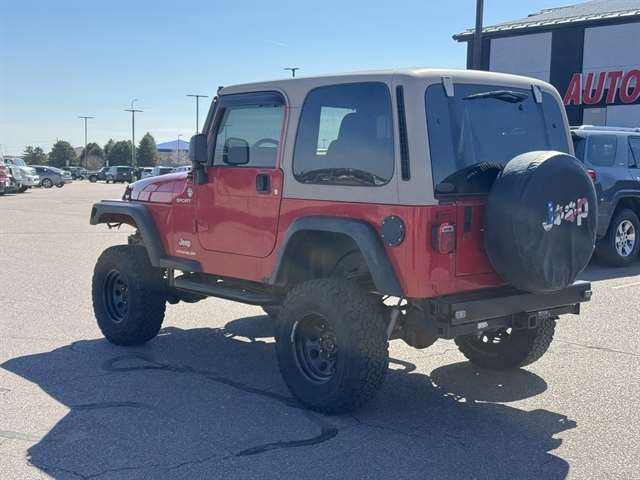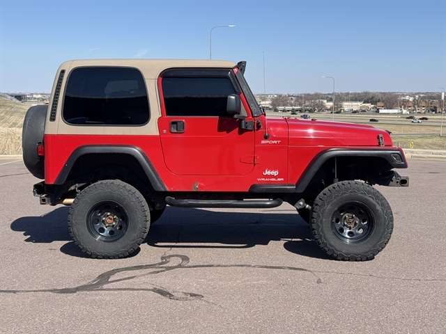 **LOCAL TRADE IN**, **CUSTOM ALLOY WHEELS**, Wrangler Sport, 2D Sport Utility, PowerTech 4.0L I6, 6-Speed Manual, 4WD, Flame Red Clearcoat, Dark Slate Gray w/Cloth High-Back Bucket Seats, 7 Speakers, Air Conditioning, AM/FM Compact Disc w/Changer Control, Cloth High-Back Bucket Seats, Easy Folding SoftTop, Front fog lights, Power steering.