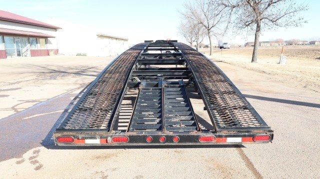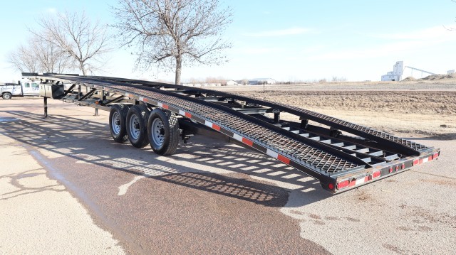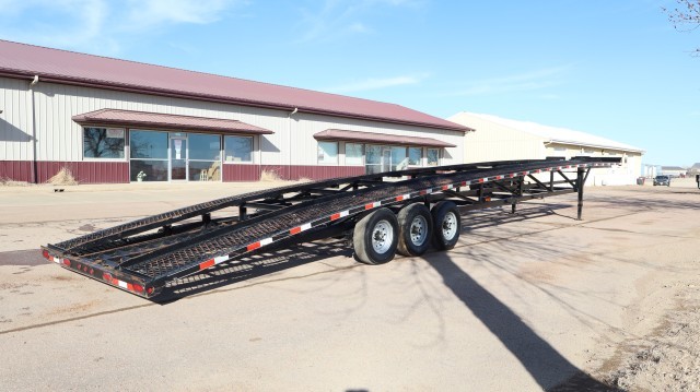 Does Not Have Salvage Title Or South Dakota Damage Disclosure. Pull Home. Hard To Find Kaufman Low Profile Triaxle 50' Wedge Trailer with 3 - 7,000lb Axles, 18,000lb GVWR, Dual Drop Foot Jacks, All Wheel Electric Brakes, Lockable Storage Box, LED Lighting, 8' Aluminum Ramps and 16" Wheels. 3-Car Low Profile Car Trailer. Easy Pulling! Clean!!