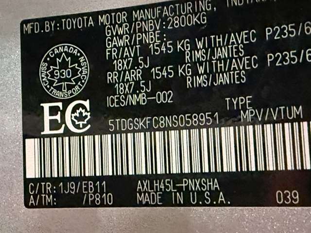 | VIN | 5TDGSKFC8NS058951 |