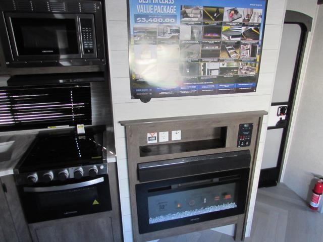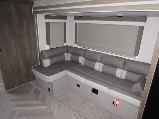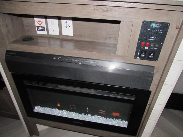 The Salem 22RBS is the perfect couple's coach, with a front queen bedroom and HUGE rear bath with walk-in shower. The living area features a unique 8' chaise lounge/dinette that has a direct view of the entertainment center and fireplace.