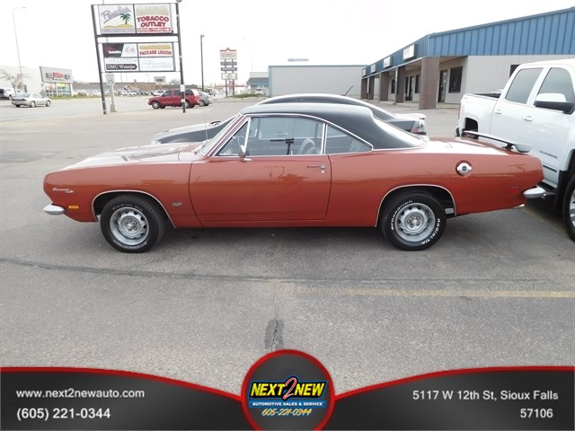SHOW ME ANOTHER 69 CUDA THIS NICE IN THIS PRICE RANGE. I WOULD WAIT BUT THE CAR WILL BE LONG GONE BY THAAT TIME. IF YOU ARE A COLLECTOR OR LOOKING FOR A COLLECTOR CAR, THIS IS YOUR CHANCE TO OWN A VERY RARE 1969 CUDA AT A PRICE UNTOUCHABLE. LOOK AROUND AND SEE WHAT THESE ARE GOING FOR. IF YOU HAPPEN TO FIND ONE FOR SALE THAT IS. TAKE A LOOK THROUGH THE PICTURES, THE CAR IS AMAZING AND UNDER THE HOOD YOU WILL FIND PERFECTION. ONCE THIS SELLS, YOU WONT LIKELY SEE ONE AGAIN FOR SALE AROUND HERE AND SURELY NOT AT THIS ROCK BOTTOM PRICE.AS WITH ALL OF OUR VEHICLES, THIS VEHICLE HAS BEEN THROUGH A THOROUGH INSPECTION, ALL FLUIDS CHECKED FOR RELIABILITY, ALL TIRES INSPECTED FOR WEAR AND RECOMMENDED INFLATION, IF NEEDED, TIRES HAVE BEEN REPLACED. WE ALSO DO A VERY THOROUGH DETAILING OF OUR VEHICLE TO INSURE IT SHINES LIKE YOUR FAMILY DOES.WHAT`S KEEPING YOU FROM COMING ON DOWN AND TAKING ADVANTAGE OF OUR OUTSTANDING AND FRIENDLY STAFF? A PLACE WHERE YOU WILL FEEL WARM AND WELCOME. WE DON`T JUST SELL CARS TO CUSTOMERS, YOU BECOME ONE OF THE NEXT2NEW FAMILY. YOU CAN ALSO TAKE ADVANTAGE OF OUR FULL SERVICE AND DETAIL SHOPS FOR ALL YOUR DIRTY JOBS.WE CAN FIX YOU UP, CLEAN YOU UP AND HAVE YOU FEELING LIKE YOU`RE DRIVING A WHOLE NEW CAR.WE LOOK FORWARD TO YOUR VISIT AND GETTING YOU ON THE ROAD WITH A SMILE ON YOUR FACE. STOP BY AND TAKE THIS CLASSIC PLYMOUTH BARRACUDA FOR A TEST DRIVE. CALL US AT 605-221-0344 WITH ANY QUESTIONS YOU HAVE. -- TRADES WELCOME -- FINANCING & EXTENDED SERVICE CONTRACTS AVAILABLE -- SHOP NEXT-2-NEW WHERE YOUR NEXT CAR MAY NOT BE NEW PRICE, BUT WILL BE NEXT2NEW CONDITION!!! OPEN 7 DAYS A WEEK.