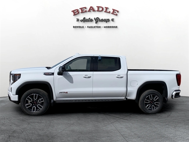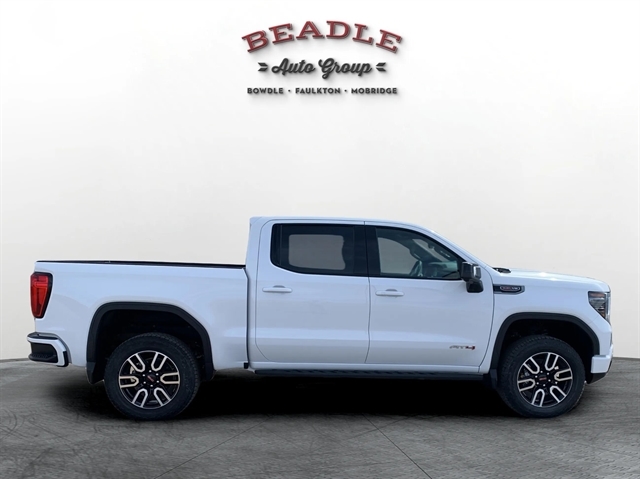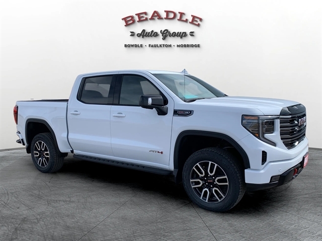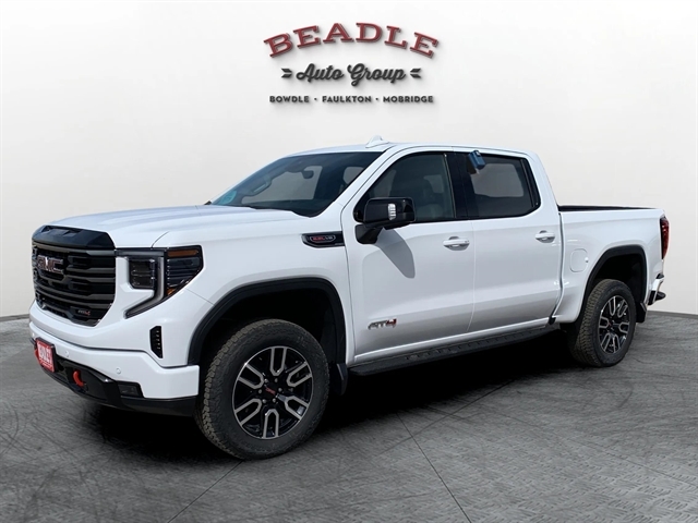 Come see this 2026 GMC Sierra 1500 AT4 Crew Cab 4WD at Beadle Chevrolet–GMC in Mobridge, South Dakota. We serve customers from Aberdeen, SD, Bismarck, ND, and Pierre, SD — all within two hours. Call us at 605-845-7277 or visit beadleautogroup.com to schedule your test drive!