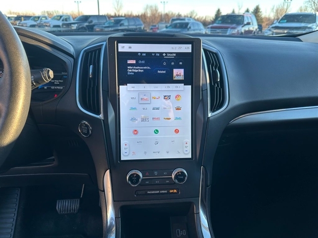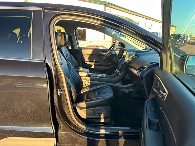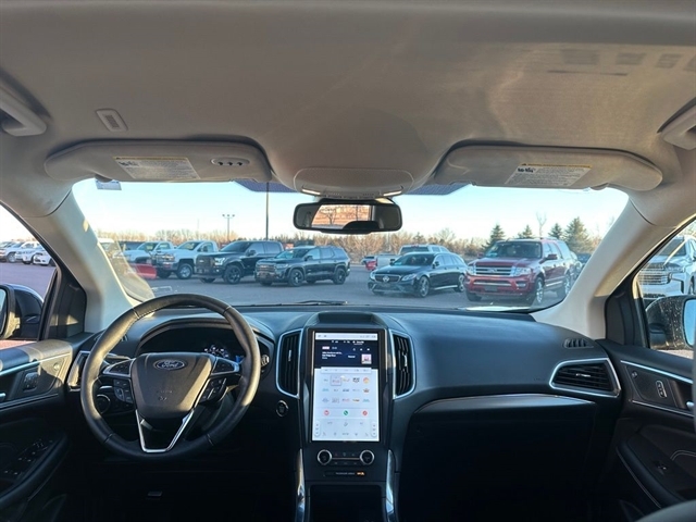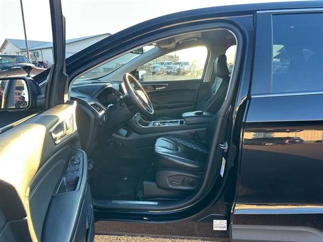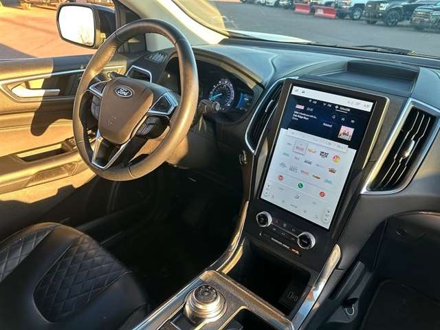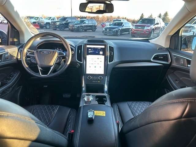Inside, the Edge Titanium offers a spacious and well-appointed cabin, with ample room for passengers and cargo alike. The ActiveX-Trimmed Heated Sport Bucket Seats provide exceptional comfort, while the SYNC 4A infotainment system with Enhanced Voice Recognition keeps you connected and entertained.