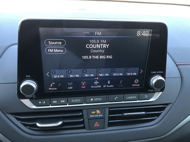 - Radio: AM/FM Audio System -inc: 6 speakers, aux input, NissanConnect featuring Apple CarPlay, Android Auto, 8" color touch-screen display, 1 front illuminated USB port (type-C) for compatible devices, SiriusXM radio w/advanced audio features, Bluetooth hands-free phone system, streaming audio via Bluetooth, hands-free text messaging assistant, 2 rear illuminated USB ports (type-A, 1 type-C) for compatible devices, Siri Eyes Free and Google Assistant voice recognition