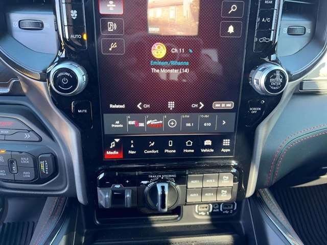 Advanced Safety Group: Adaptive Cruise Control with Stop and Go; Tailgate Ajar Warning Lamp; Pedestrian Emergency Braking; Lane Keep Assist. Bed Utility Group: MOPAR Spray in Bedliner; MOPAR Deployable Bed Step; MOPAR 4 Adjustable Cargo Tie-Down Hooks. Quick Order Package 29Y. TRX Level 2 Equipment Group: Full Length Premium Upgraded Floor Console; Rear Window Defroster; Surround View Camera System; Blind Spot and Cross Path Detection; Rain Sensitive Windshield Wipers; LED CHMSL Lamp; ParkSense Front/rear Park Assist with Stop; Power Adjustable Pedals with Memory; Pick-Up Box Lighting; Body Color Door Handles; MOPAR Bright Pedal Kit; IP LED Ambient Light Pipe; Rear Underseat Compartment Storage; Trailer Brake Control; Leather Trimmed Bucket Seats; Head Up Display; Heated Second Row Seats; Heated Steering Wheel; Leather/suede Flat-Bottom Steering Wheel; Wireless Charging Pad; Driver/passenger Wrapped Assist Handles; Ventilated Rear Seats; Rear 60/40 Folding Split Recline Seat; Ventilated Front Seats; Remote Tailgate Release; Harman/kardon 19 Speaker Premium Sound; Premium Wrapped Instrument Panel Bezel; 2-Door Passive Entry. Front Door Locks; Universal Garage Door Opener; Exterior Mirrors with Memory; Luxury Front Door Trim Panel; Driver Seat Memory; Front Door Accent Lighting; Power 8-Way Driver and Passenger Seats; Radio/driver Seat/mirrors/pedals Memory; Digital Rearview Mirror; Rear Door Accent Lighting; Sun Visors with Illuminated Vanity Mirrors. Trailer Tow Group: Trailer Light Check; Trailer Brake Control; Trailer Tire Pressure Monitoring System. TRX Carbon Fiber Package: Leather/carbon Flat-Bottom Steering Wheel; Real Carbon Fiber Interior Accents. TRX Red Interior Accents. Harman/kardon 19 Speaker Premium Sound. MOPAR Off-Road Style Running Boards. Blind Spot and Cross Path Detection. Surround View Camera System. Trailer Reverse Steering Control. Black Power-Fold Trailer Tow Mirrors. ParkSense Front/rear Park Assist with Stop. Remote Start System. **Equipment listed is based on original vehicle build and subject to change. Please confirm the accuracy of the included equipment by calling the dealer prior to purchase.**Advanced Safety Group: Adaptive Cruise Control with Stop and Go; Tailgate Ajar Warning Lamp; Pedestrian Emergency Braking; Lane Keep Assist. Bed Utility Group: MOPAR Spray in Bedliner; MOPAR Deployable Bed Step; MOPAR 4 Adjustable Cargo Tie-Down Hooks. Quick Order Package 29Y. TRX Level 2 Equipment Group: Full Length Premium Upgraded Floor Console; Rear Window Defroster; Surround View Camera System; Blind Spot and Cross Path Detection; Rain Sensitive Windshield Wipers; LED CHMSL Lamp; ParkSense Front/rear Park Assist with Stop; Power Adjustable Pedals with Memory; Pick-Up Box Lighting; Body Color Door Handles; MOPAR Bright Pedal Kit; IP LED Ambient Light Pipe; Rear Underseat Compartment Storage; Trailer Brake Control; Leather Trimmed Bucket Seats; Head Up Display; Heated Second Row Seats; Heated Steering Wheel; Leather/suede Flat-Bottom Steering Wheel; Wireless Charging Pad; Driver/passenger Wrapped Assist Handles; Ventilated Rear Seats; Rear 60/40 Folding Split Recline Seat; Ventilated Front Seats; Remote Tailgate Release; Harman/kardon 19 Speaker Premium Sound; Premium Wrapped Instrument Panel Bezel; 2-Door Passive Entry. Front Door Locks; Universal Garage Door Opener; Exterior Mirrors with Memory; Luxury Front Door Trim Panel; Driver Seat Memory; Front Door Accent Lighting; Power 8-Way Driver and Passenger Seats; Radio/driver Seat/mirrors/pedals Memory; Digital Rearview Mirror; Rear Door Accent Lighting; Sun Visors with Illuminated Vanity Mirrors. Trailer Tow Group: Trailer Light Check; Trailer Brake Control; Trailer Tire Pressure Monitoring System. TRX Carbon Fiber Package: Leather/carbon Flat-Bottom Steering Wheel; Real Carbon Fiber Interior Accents. TRX Red Interior Accents. Harman/kardon 19 Speaker Premium Sound. MOPAR Off-Road Style Running Boards. Blind Spot and Cross Path Detection. Surround View Camera System. Trailer Reverse Steering Control. Black Power-Fold Trailer Tow Mirrors. ParkSense Front/rear Park Assist with Stop. Remote Start System. **Equipment listed is based on original vehicle build and subject to change. Please confirm the accuracy of the included equipment by calling the dealer prior to purchase.**