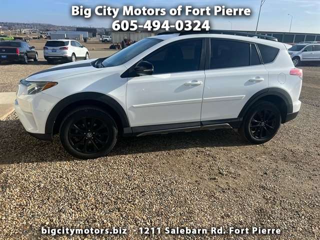 Get ready to embark on exciting adventures with this White 2018 Toyota RAV4! Powered by a 2.5L DOHC 4-Cylinder engine paired with a smooth 6-Speed Automatic transmission, this RAV4 offers a thrilling driving experience. Equipped with Automatic Full-Time All-Wheel Drive and Towing Equipment, it`s ready to tackle any road or trail you throw its way. The sleek exterior features a sunroof, fog lamps, and a lip spoiler, adding a sporty touch to its appearance. Inside, you`ll find a comfortable cabin with dual-zone automatic air conditioning, cruise control, and adaptive cruise control for a convenient ride. The front seats offer ample support, and the rear seats come with storage pockets for your convenience. Safety features include Toyota Safety Sense C, collision mitigation, and rear child safety locks for peace of mind on every journey. Plus, rest assured with the available Carfax report for added confidence in your purchase.This White 2018 Toyota RAV4 is not just a vehicle - it`s a companion ready to take you on endless adventures with style and reliability. Visit Big City Motors of Fort Pierre to shop our great deals. You can call 605-494-0324 to schedule your test drive today.