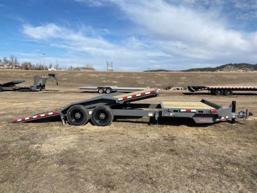 2025 Midsota model TBWB24 Tilt Bed trailer, 102" Wide and 24ft long, 6ft Stationary deck and 18ft Tilt Bed with drive over fenders. Hydraulic jack, Pallet Fork Holders, Locking valve for tilt bed, Traction Strips on Tilt Bed, Tandem 8000lb Spring Axles with Electric Brakes and 17.5 steel Wheels with 18ply tires, Spare Tire and mount, 17,600lb GVWR, 5 YEAR LIMITED WARRANTY,