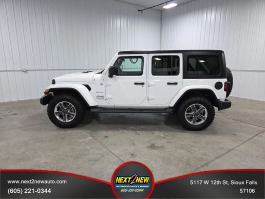 THIS CLEAN LOW MILE 2019 JEEP WRANGLER UNLIMITED SAHARA IS THE ULTIMATE ON/OFF ROAD VEHICLE. ITS GREAT FOR A TRIP TO THE HILLS TO DO SOME TRAIL RIDES OR JUST BACK AND FORTH TO WORK. THE ALMOST NEW GOODYEAR WRANGLER TIRES, REMOTE START, CLOTH INTERIOR, AND REMOVABLE HARD TOP MAKE THIS ONE FUN TO DRIVE. AS WITH ALL OF OUR VEHICLES, THIS VEHICLE HAS BEEN THROUGH A THOROUGH INSPECTION, ALL FLUIDS CHECKED FOR RELIABILITY, ALL TIRES INSPECTED FOR WEAR AND RECOMMENDED INFLATION. IF NEEDED, TIRES HAVE BEEN REPLACED. WE ALSO DO A VERY THOROUGH DETAILING OF OUR VEHICLE TO ENSURE IT SHINES LIKE YOUR FAMILY DOES.WHAT`S KEEPING YOU FROM COMING ON DOWN AND TAKING ADVANTAGE OF OUR OUTSTANDING AND FRIENDLY STAFF? A PLACE WHERE YOU WILL FEEL WARM AND WELCOME. WE DON`T JUST SELL CARS TO CUSTOMERS, YOU BECOME ONE OF THE NEXT2NEW FAMILY. YOU CAN ALSO TAKE ADVANTAGE OF OUR FULL SERVICE AND DETAIL SHOPS FOR ALL YOUR DIRTY JOBS.WE CAN FIX YOU UP, CLEAN YOU UP AND HAVE YOU FEELING LIKE YOU`RE DRIVING A WHOLE NEW CAR. WE LOOK FORWARD TO YOUR VISIT AND GETTING YOU ON THE ROAD WITH A SMILE ON YOUR FACE. STOP BY AND TAKE THIS VEHICLE FOR A TEST DRIVE. CALL US AT 605-221-0344 WITH ANY QUESTIONS YOU HAVE. -- TRADES WELCOME -- FINANCING & EXTENDED SERVICE CONTRACTS AVAILABLE -- SHOP NEXT-2-NEW WHERE YOUR NEXT CAR MAY NOT BE NEW PRICE, BUT WILL BE NEXT2NEW CONDITION!!! OPEN 7 DAYS A WEEK.