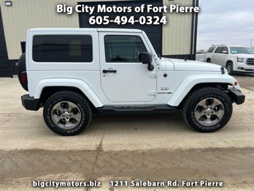 Ready for some off-road adventures? This White 2018 Jeep Wrangler JK is the perfect companion for those seeking thrills and excitement on the trails. With its powerful 3.6L V6 engine and Part-Time Four-Wheel Drive system, this Jeep can handle any terrain with ease. The Heavy Duty Suspension with Gas Shocks and 3.21 Rear Axle Ratio ensure a smooth and controlled ride, while the Towing Equipment is ready to haul your gear for the ultimate outdoor experience. This Wrangler JK is not just about performance, it also offers comfort and convenience features like Cruise Control, Leather Steering Wheel, and Illuminated Front Cupholder. The sleek White exterior is complemented by Black accents and the iconic Jeep styling, making a bold statement wherever you go. Whether you`re cruising around town or hitting the trails, this Jeep Wrangler JK is sure to turn heads.And the best part? A Carfax report is available for this vehicle, so you can purchase with confidence. Don`t miss out on the opportunity to own this capable and stylish Jeep Wrangler JK - it`s ready to take you on your next adventure! Visit Big City Motors of Fort Pierre to shop our great deals. You can call 605-494-0324 to schedule your test drive today.