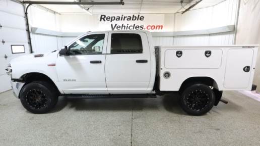 Possible Drive Home. Radiator Still Full. Windshield Ok. Hood Looks Ok. Loaded Up Ram 2500 CrewCab Tradesman Utility Bed with Tow Package, Vinyl Seats, BackUp Camera, Front Leveling Kit, Cooper Discoverer X/T LT285/65R18 Tires and 18" Mayhem Warrior Wheels. DuraMag Utility Bed with Storage Compartments and LED Lighting. Powerful 6.4L Hemi V8 with 8 Speed Automatic Transmission. Four Wheel Drive. Super Clean! Low, Low Miles!!! Still Smells New!! Nice Fix! Excellent Farm/Shop/Construction/Work Truck!! Great For Many Uses!! $56,950 Window Sticker - *Not Including the Utility Bed Upgrade*.